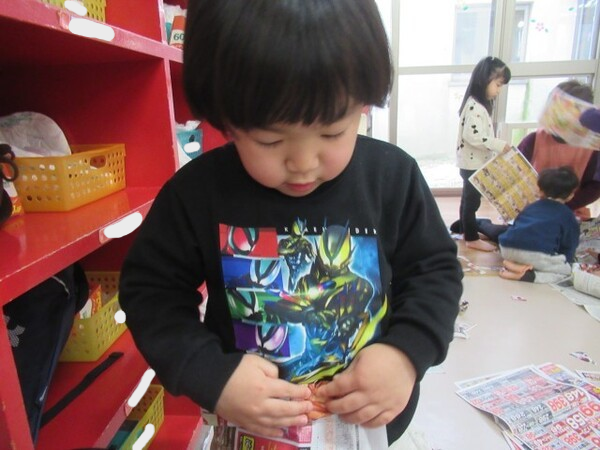 選んだ後は、折り紙をちぎってもらいました。