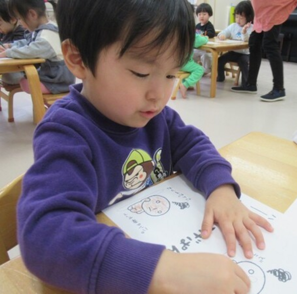 「どれにしようかな…」ととても悩んでいましたが、じっくりと見比べて考え自分の気に入った絵柄を選ぶことができた様子の子どもたちでした!