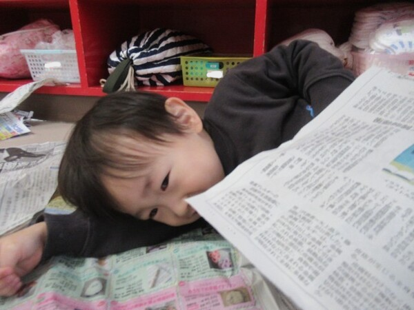 「のりだよ、少し触ってみる??」と聞くと、ツンツンしたり、少しひろげてみたりして、のりの感触を楽しんでいました♪