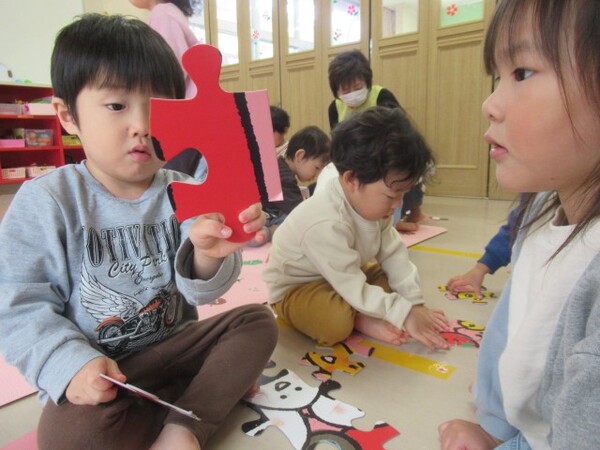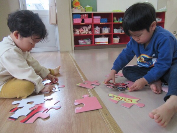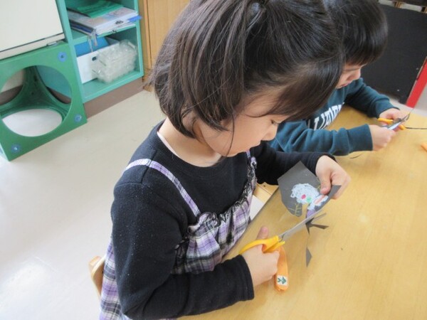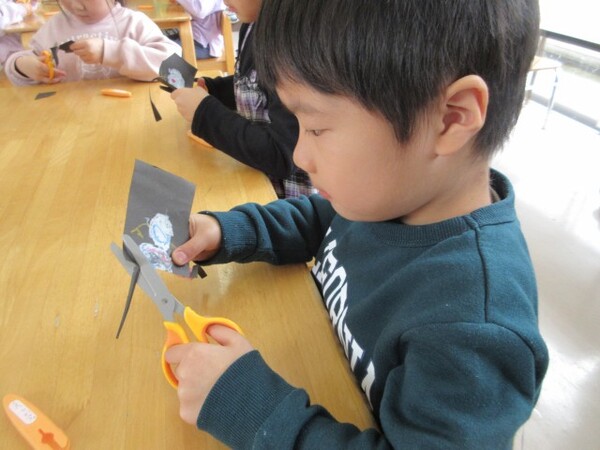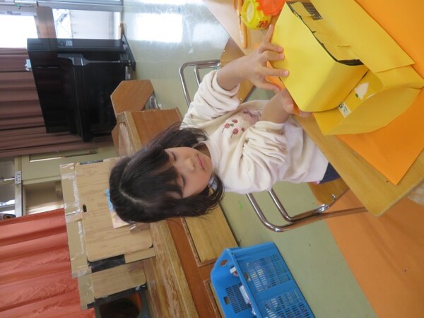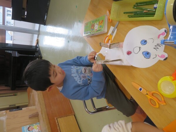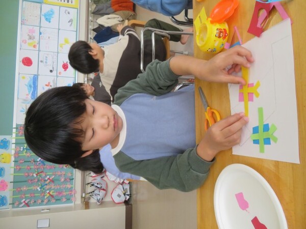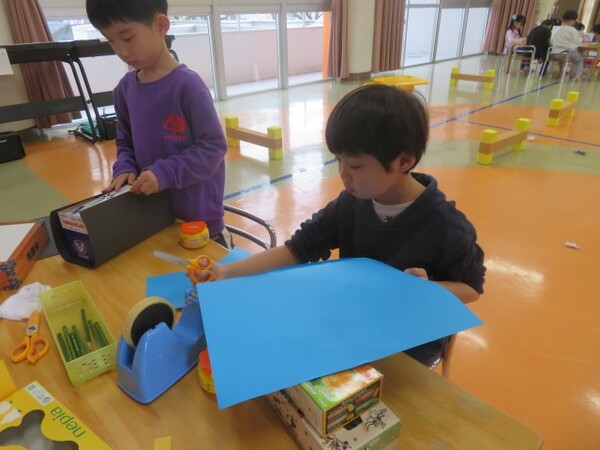 今日から、朝のコーナー遊びに【工作コーナー】を作りました。