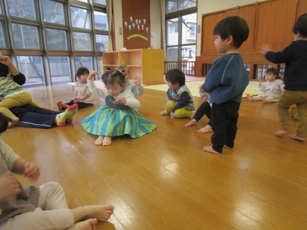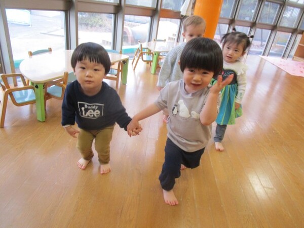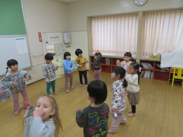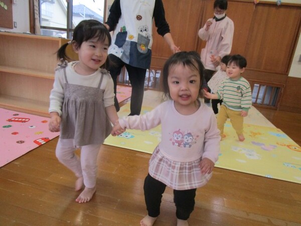 その後は、お友だちと手を繋いで歩いたり、歌にあわせて踊ったりしました。