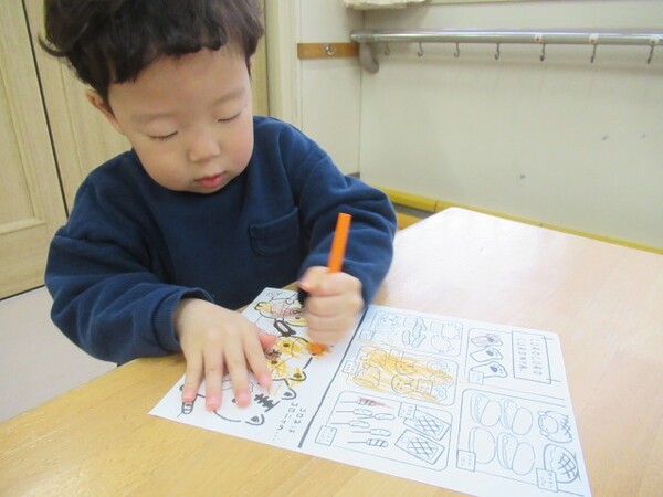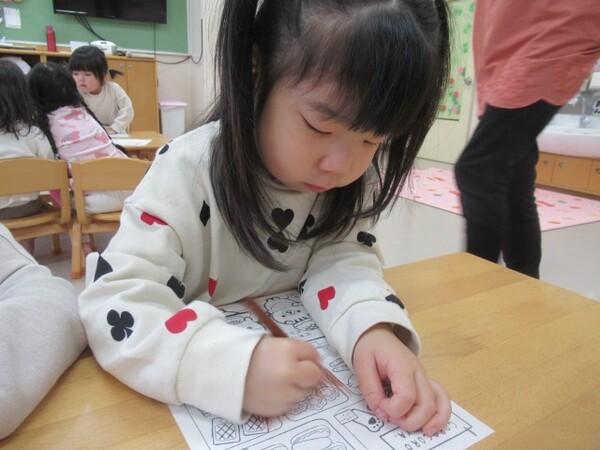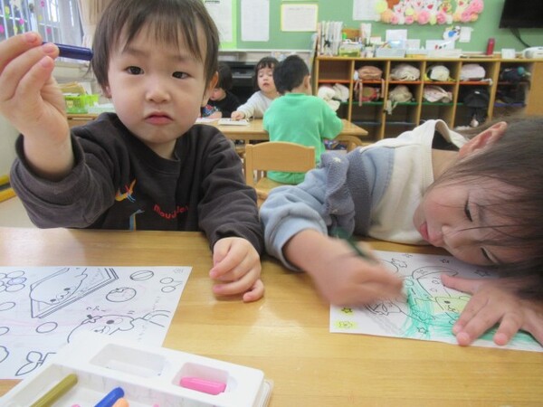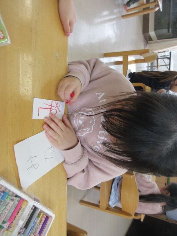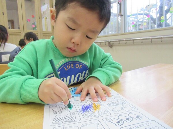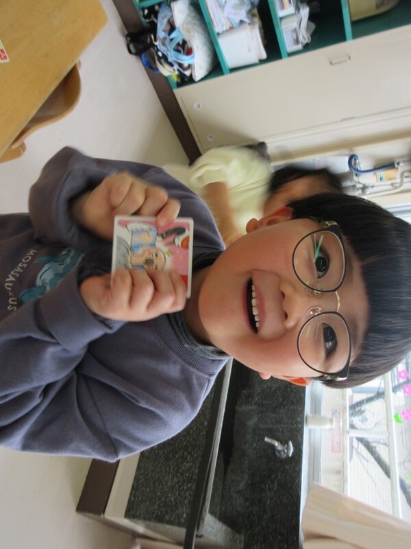 「どれにしようかな…」ととても悩んでいましたが、じっくりと見比べて考え自分の気に入った絵柄を選ぶことができた様子の子どもたちでした!