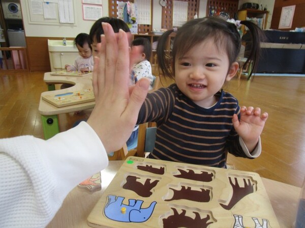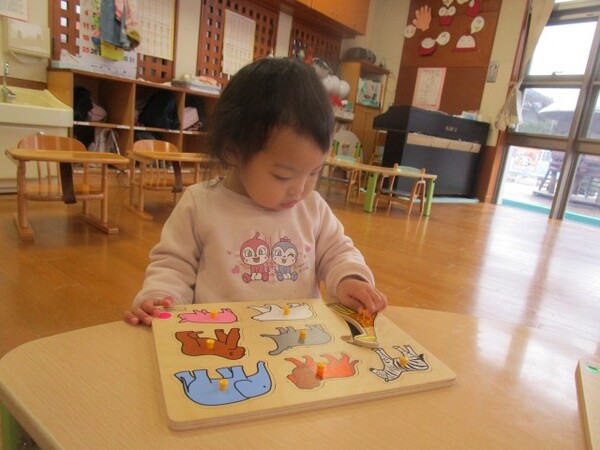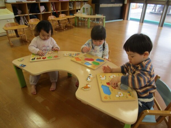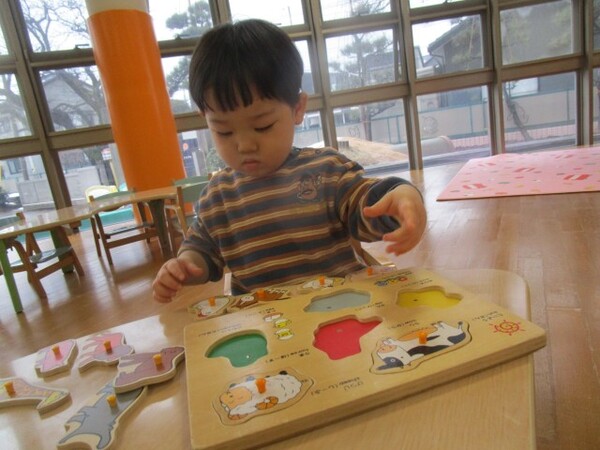 イスに座るとお友だちのパズルと混ざったり、途中でやめたりすることなく集中して取り組めるようです!