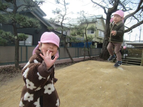 園庭では、雲が多く、飛行機は見ることができなかったのですが「飛行機の音したね!」「どこだろう…」と空を見上げて、お友だちとお話をしたり、笑い合ったりしていました♡