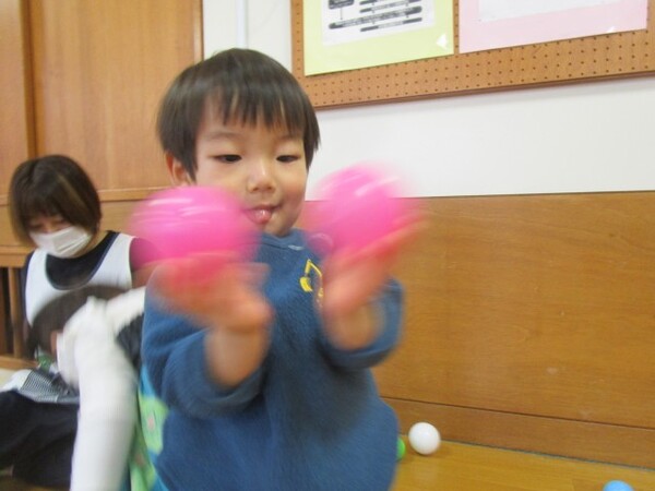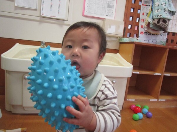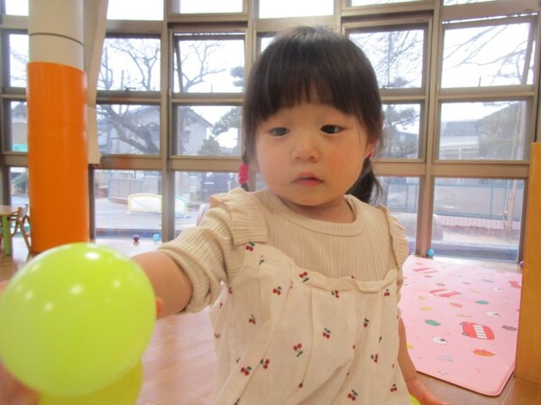 大人気の大きなボールは、今日も「かーしーて!」と言葉で気持ちを伝えられる姿が見られました。
