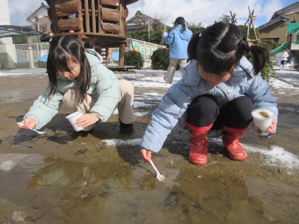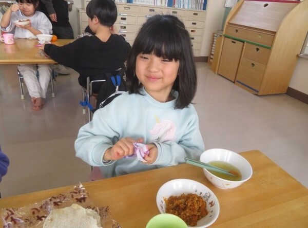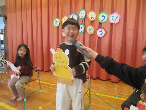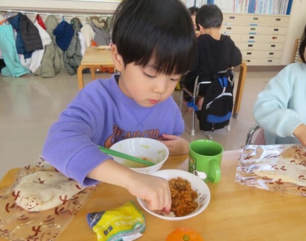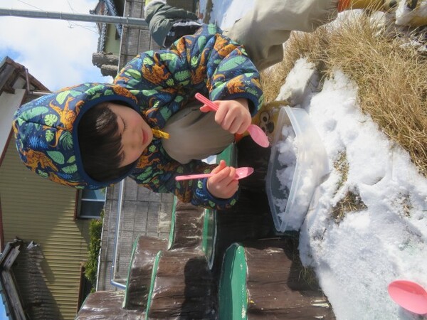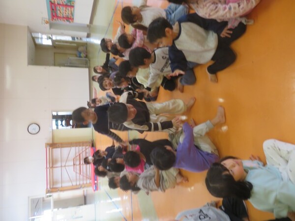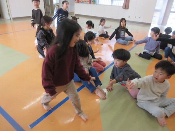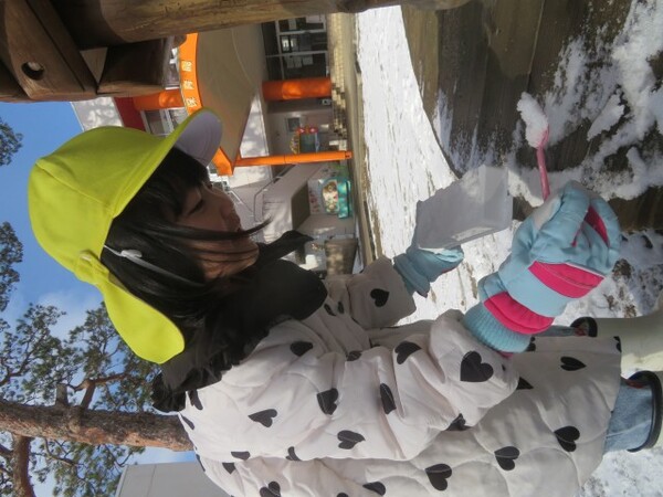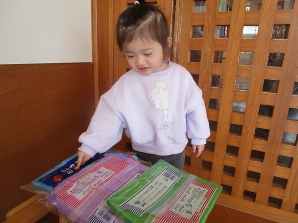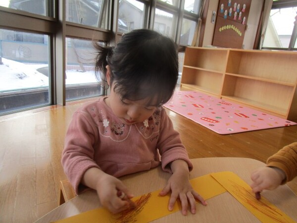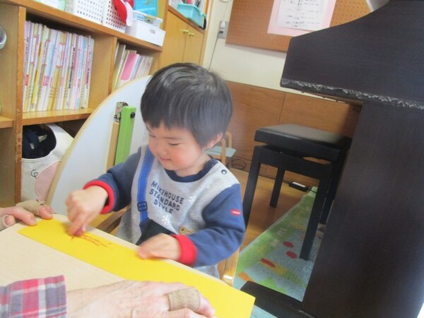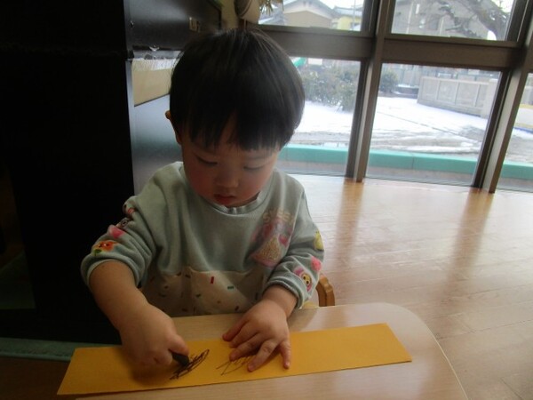 いつもの塗り絵と異なり、細長い画用紙だったためか、横に線をひいたり、薄く絵をかいたりする姿が見られました!
