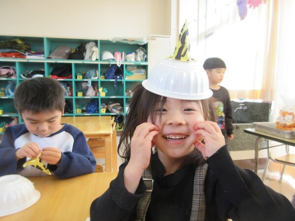 鬼のつのを帽子に付けたよ♬A☆あやめ組