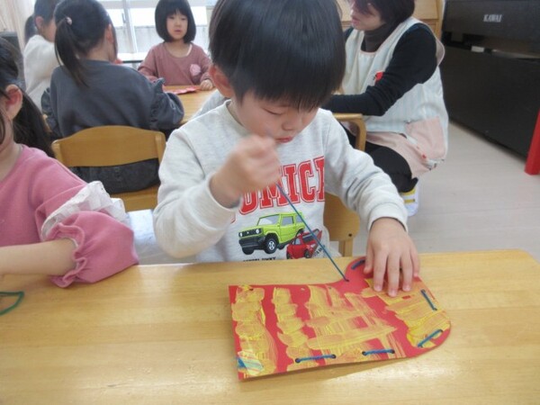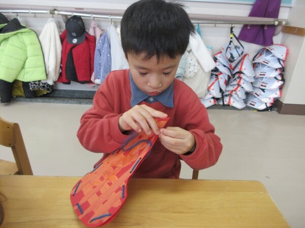 毛糸で靴下を縫ったよ♪@☆あやめ組
