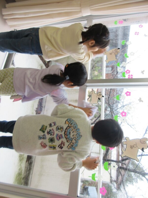 布巾でテーブル・イス・窓・ロッカー・靴棚などを拭いてもらいました。