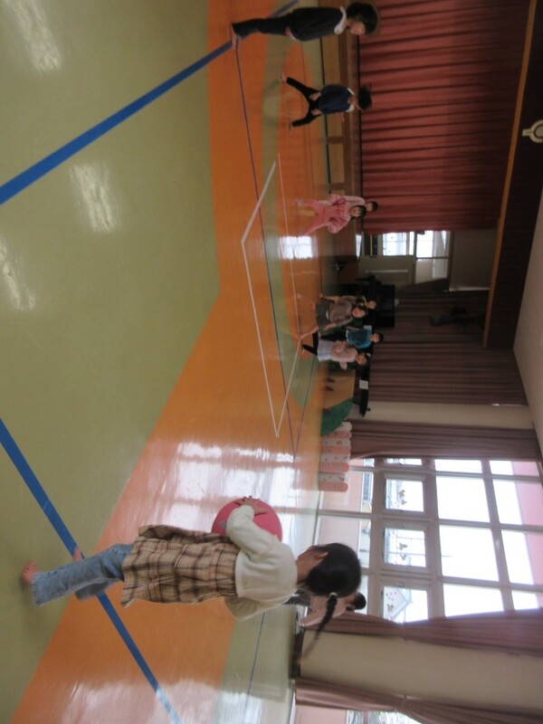 テーブルチームさんからボールを転がしてもらったよ♪C☆あやめ組