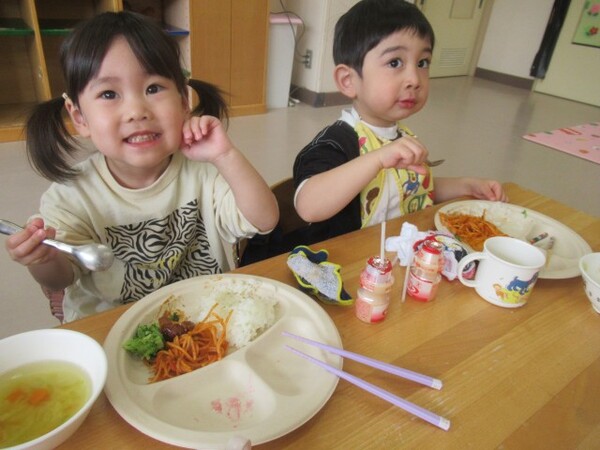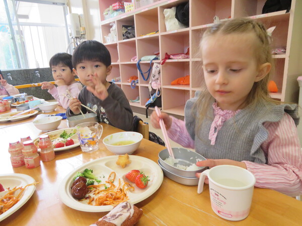 他のクラスのお友だちとの給食の時間♪A☆あやめ組