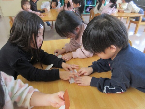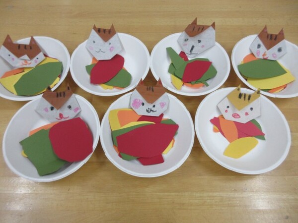 折り紙でリスさんを折ったよ♪Aあやめ組