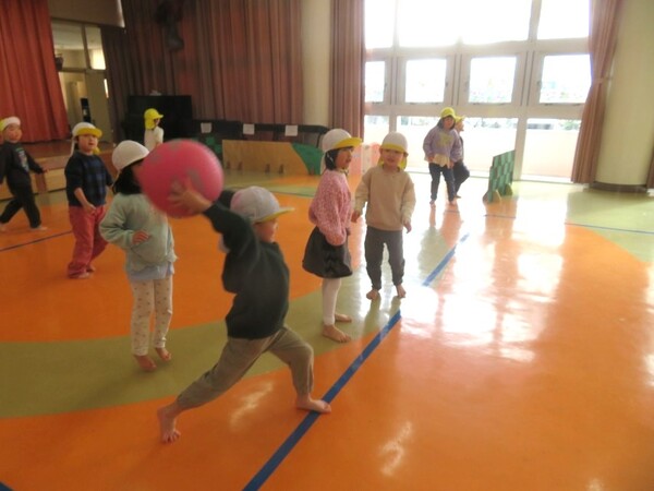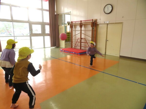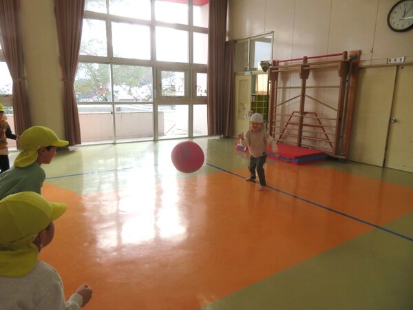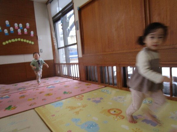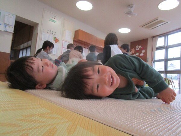 新聞紙で遊んだ後は、かけっこをしたり、マットの上でゴロゴロしたりして体を動かすことを楽しんでいました。