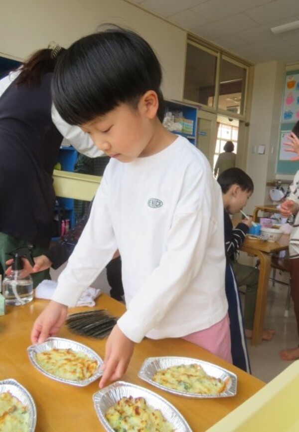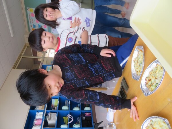 お友だちがお箸をつかう姿をみて、「ぼく・わたしも!!」とお箸をつかってみていました。
