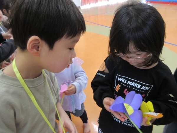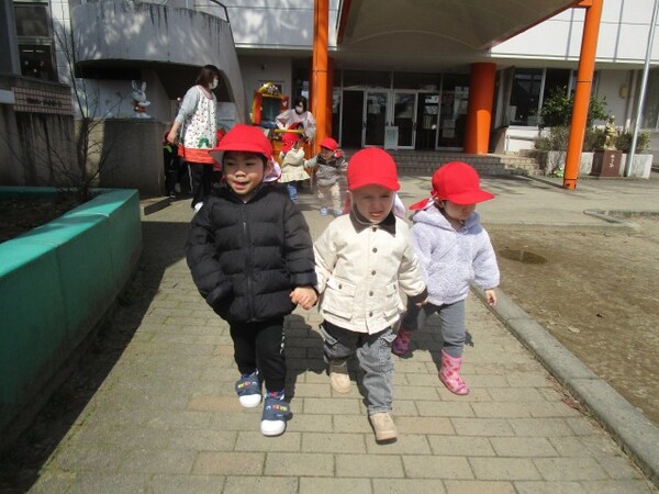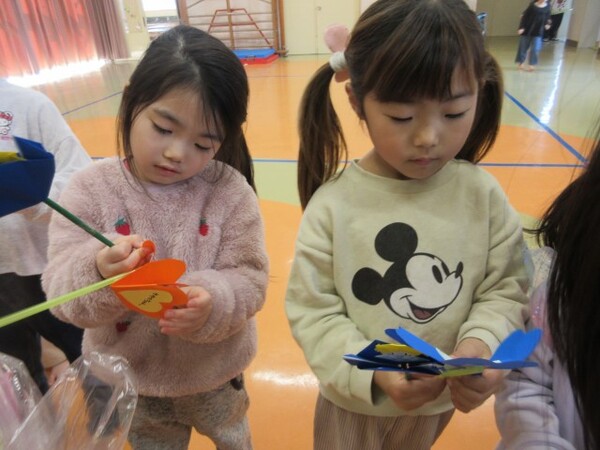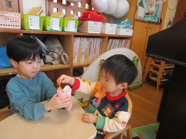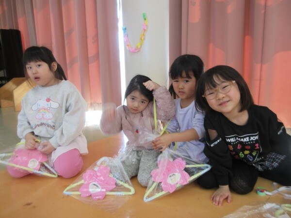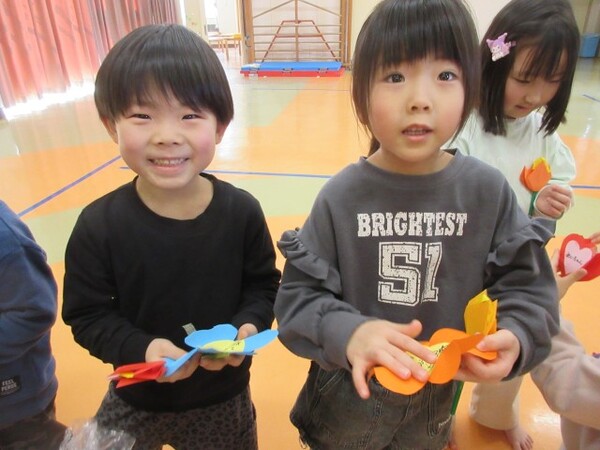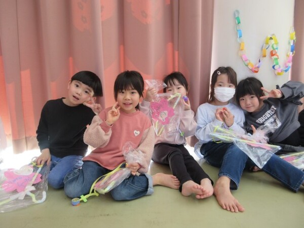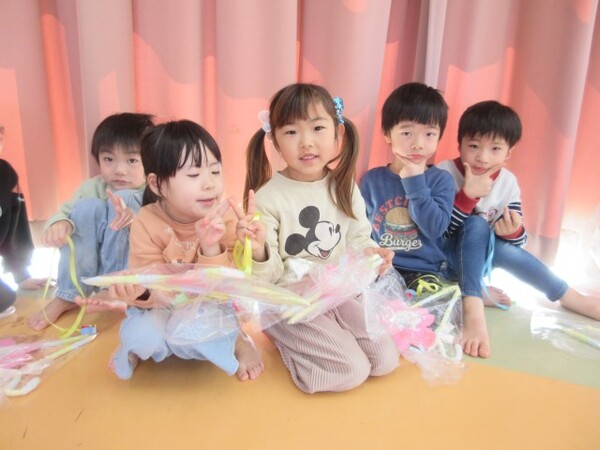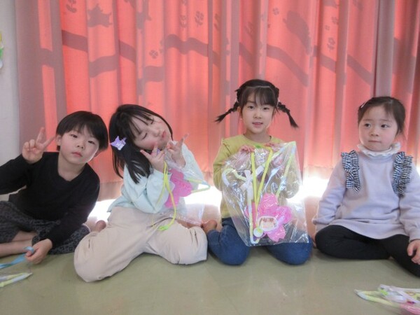 たくさん遊んでくれて、ありがとうの気持ちを込めて、もも・つぼみ組さんもお守りのプレゼントを用意していたので「ありがとう!」とプレゼントしてもらいました。