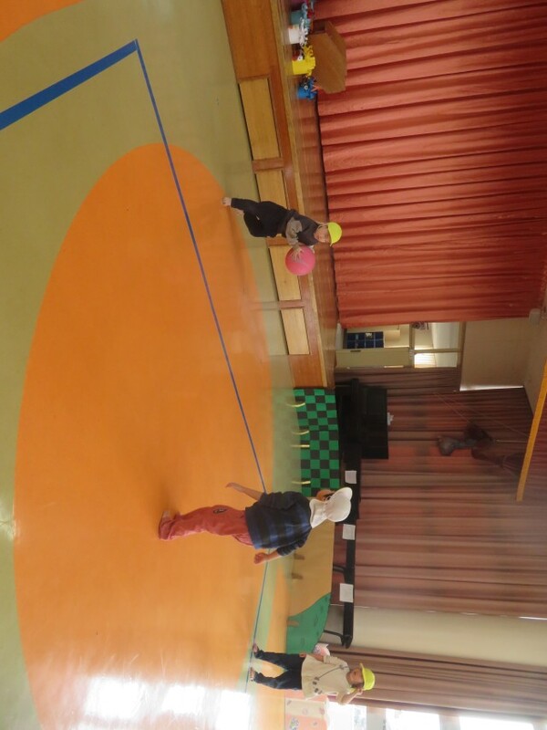 「オオカミさん」は、歌がなっている間は丸く歩き、「おおかみさーん!!」と呼ぶと「今、〇〇をしているよ…」と教えてくれるので、お話をよく聞き、オオカミさんが準備を終え、食べに来たらお家に逃げる遊びです。