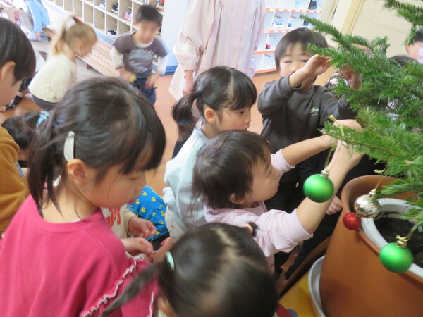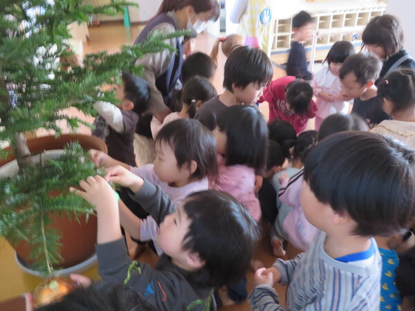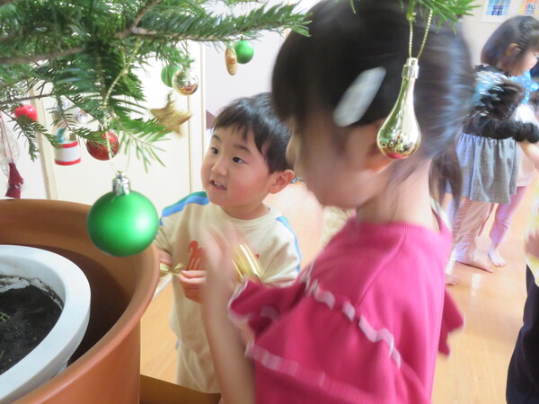 ひまわり組さんと一緒にツリーの飾りつけをしました!