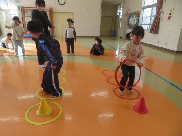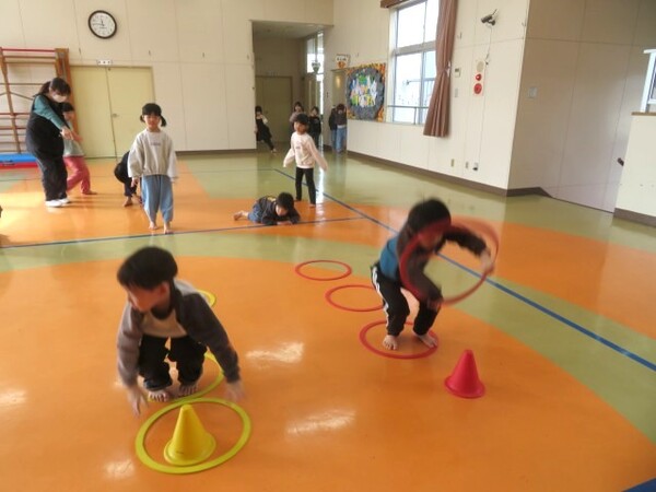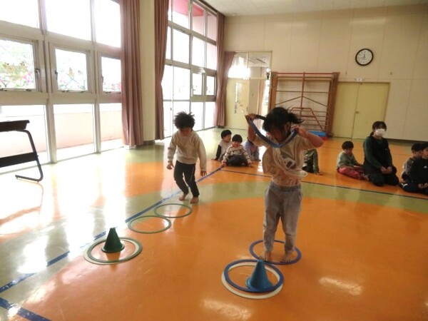 もも組さんもつぼみ組さんも運動遊びの楽しみ方をそれぞれ見つけて、たくさん体を動かしながら楽しんでいました!
