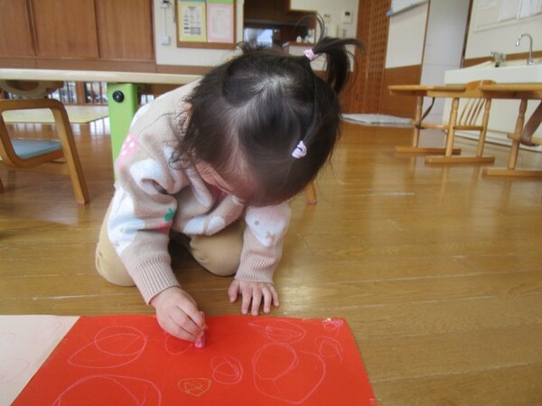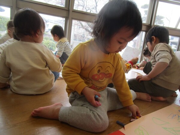 入園・進級当初に比べて、たくさん色を使い、丸や四角などの形を描きながら自分のイメージした絵を描くことができるようになりましたね!