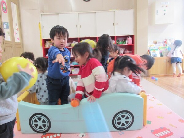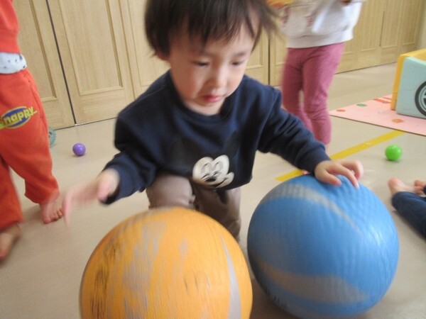 テーブルチームさんからボールを転がしてもらったよ♪C☆あやめ組