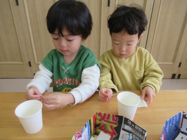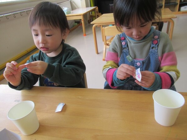 選んだ後は、折り紙をちぎってもらいました。
