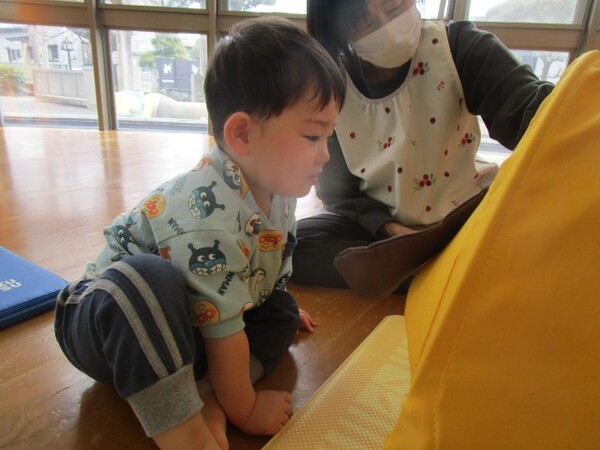 ぬいぐるみでは、最初は知らなかった動物たちの名前もおぼえ、「かえるさん!」「ぱんださん!」と好きな動物を選び、ぬいぐるみ同士でお話をしたり、動物に関連した歌を歌ったりしています☆