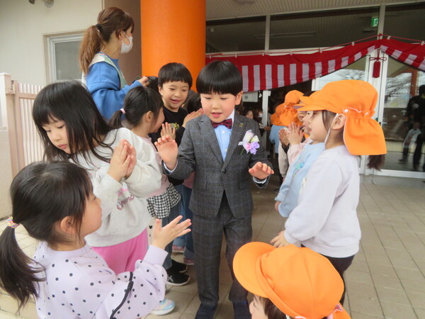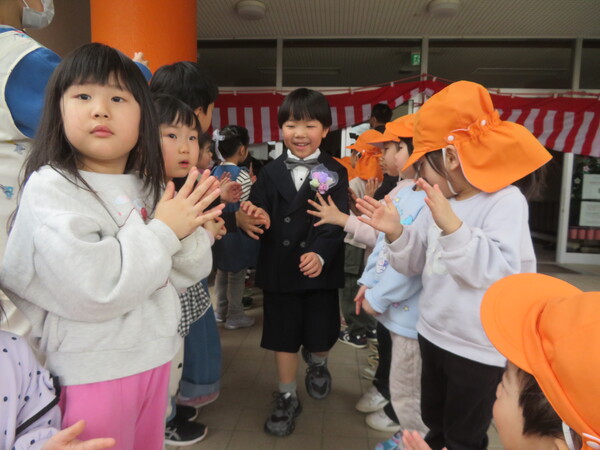 見に行く前に卒園式の意味を伝えたり、来年はみんなが同じ立場になって卒園式をすることを伝えました。