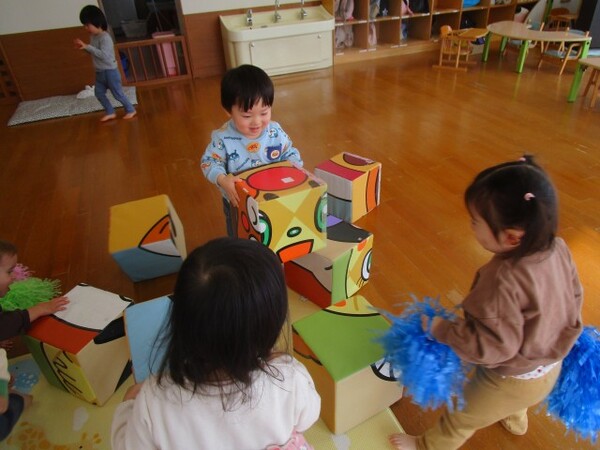 その後は、アンパンマンサイコロ・マグネット・踊りで使うポンポンで遊びました。