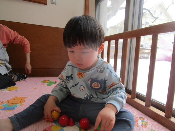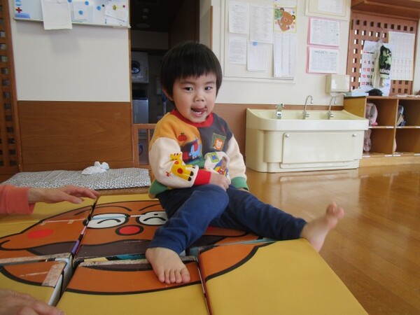 アンパンマンサイコロでは、保育士と一緒にパズルのように組み合わせてアンパンマンのキャラクターを完成させては「あんぱんまんー!!」と声にし、できたものを見て喜んでいました!