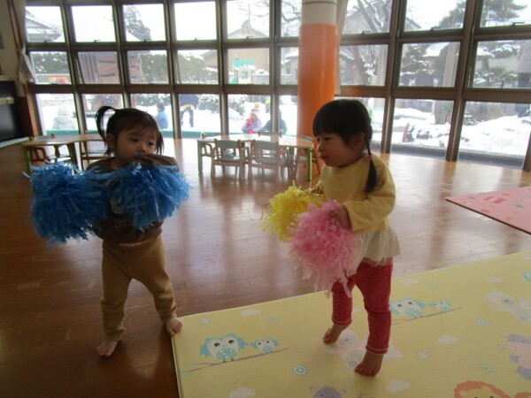 いつも踊っている歌をかけるとポンポンを持って手や体をふりふり☆