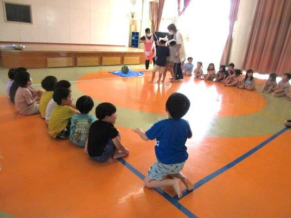 今日の給食は「千草焼き【アレルギー対応メニュー 野菜入り肉団子】・きゅうり漬け・みそ汁・焼きのり・りんご」で〜す!