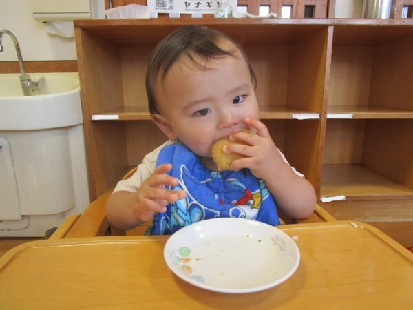 さつまいもコロッケを手で持ってあむあむと食べていました♪