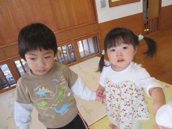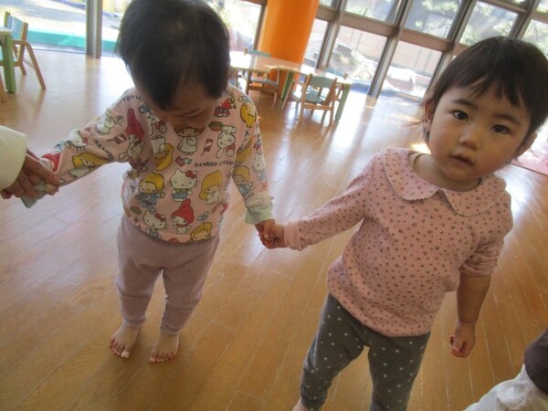 座って遊んだ後は、お友だちと手を繋いで歩きました。