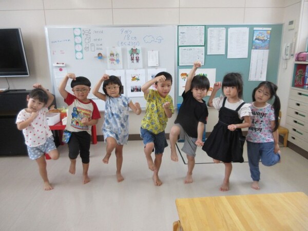 二日目、保育士が3つの曲を踊りました。今度は心の中で『どの曲でどの踊りを自分がしたいか』を考えてもらいました。