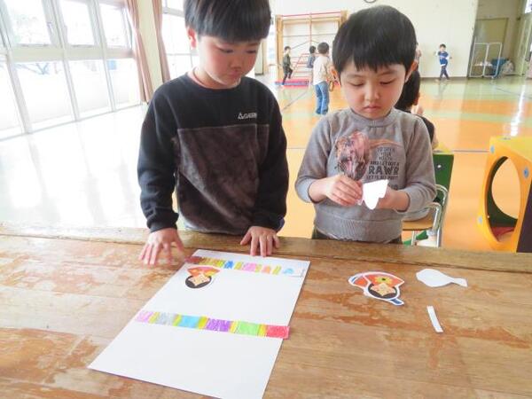 つくし組さんはみんなで話し合って、【なきむしオニ】と【おこりんぼうオニ】をやっつけたい!と決めました。ひまわり組さんが描いてくれたオニの絵をよ〜くねらって「おには〜そと!ふくは〜うち〜!」と言いながら豆を投げていました。