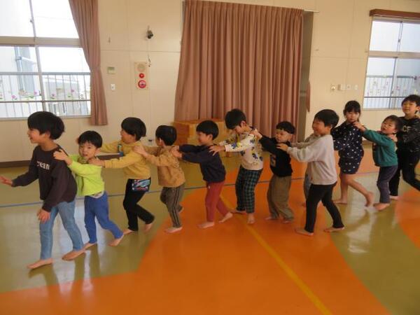 今日はつくし組さん、ひまわり組さんと一緒にゲームをして楽しみました。