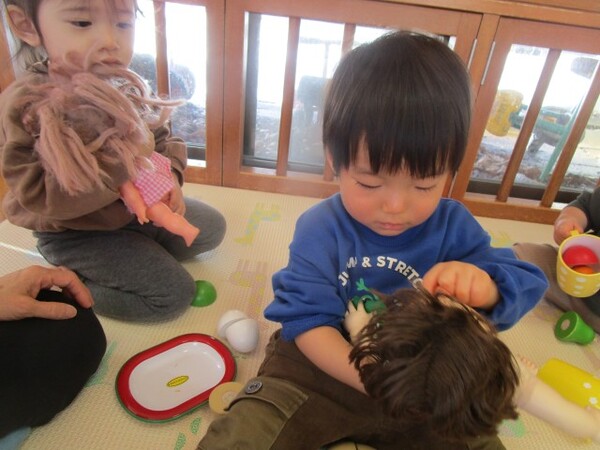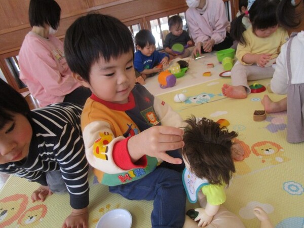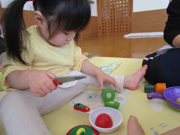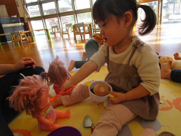 生き物のおもちゃは、サメ・キリン・イルカなどの名前を覚えてきて「さーめ!」「きりんしゃん!」「いるかあ!!」と名前を声に出し、保育士やお友だちと楽しんでいます!