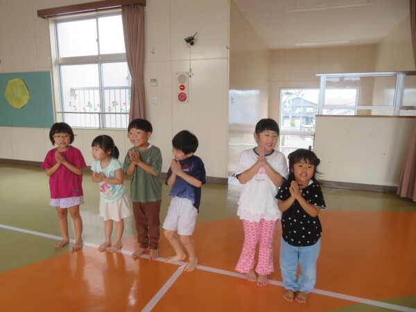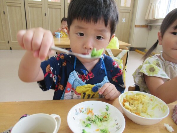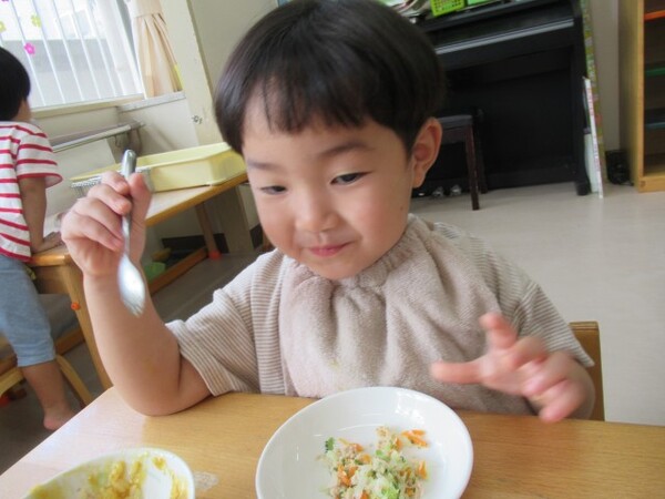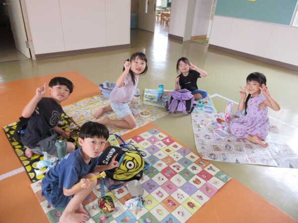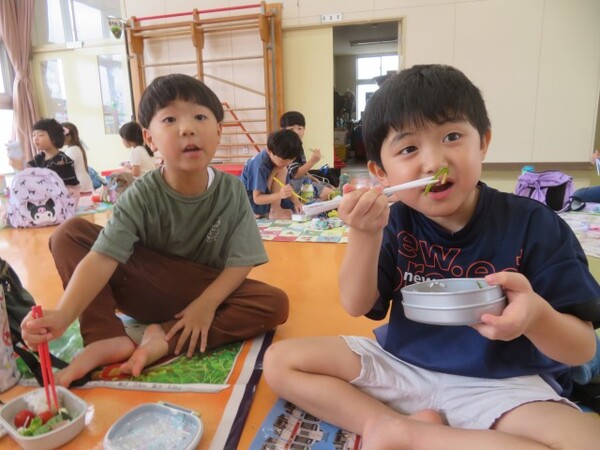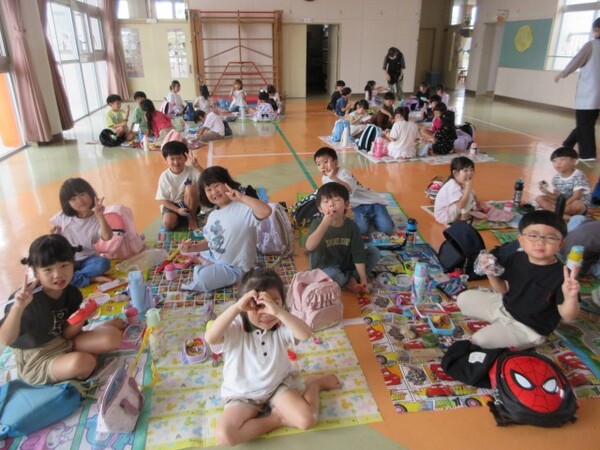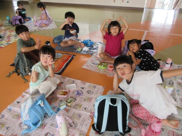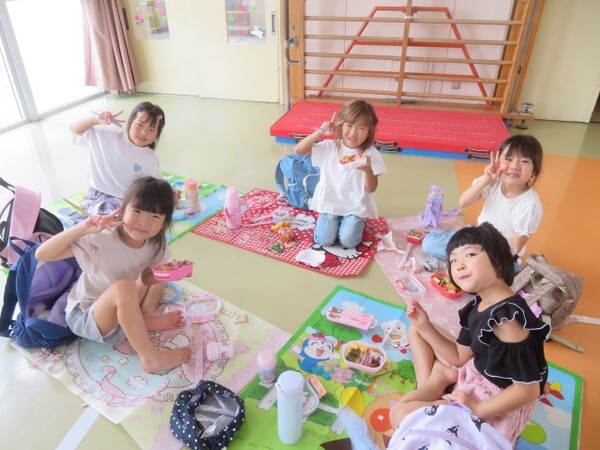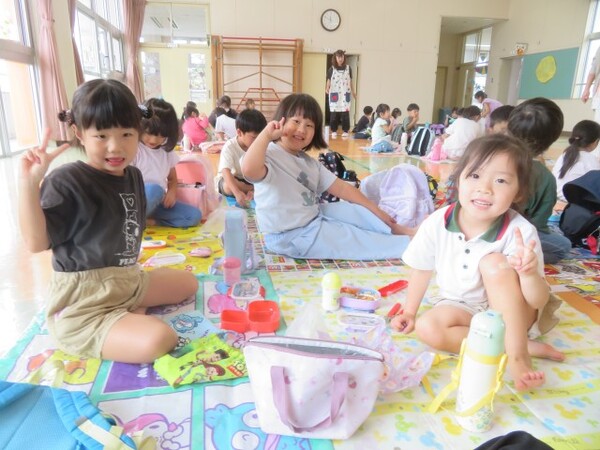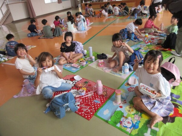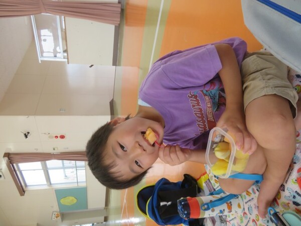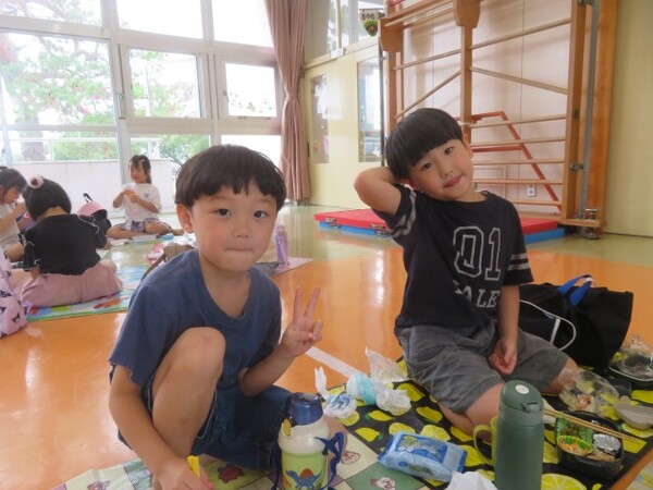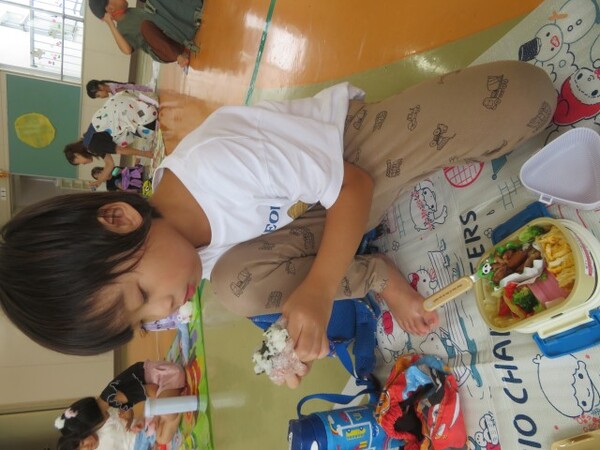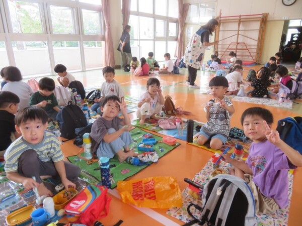 楽しみにしていたお弁当は、お遊戯場であやめ組さんと一緒に食べました。みんなとってもいい笑顔でした。