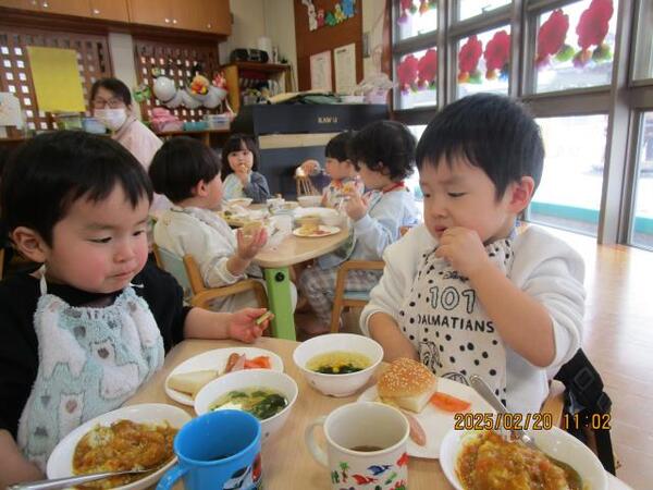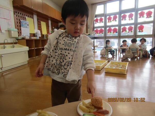 さつまいもコロッケを手で持ってあむあむと食べていました♪
