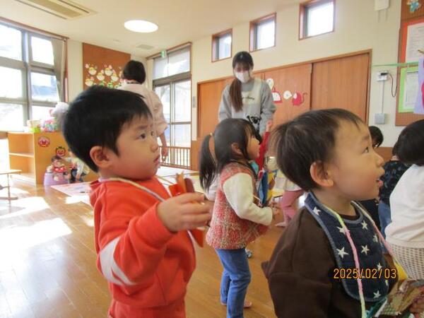 すると、「もう少し優しく投げればいいんだ!」と気付いた子どもたち。保育者が「大きいフラフープの方が入りやすいかもよ」と声をかけると「本当だ!!」と納得していました。