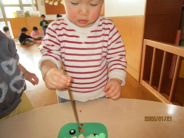 座りながら上半身だけで踊りを真似してどれにするか考える子、どれにするか真剣に見定めている子、それぞれでした。