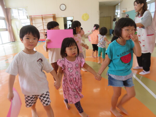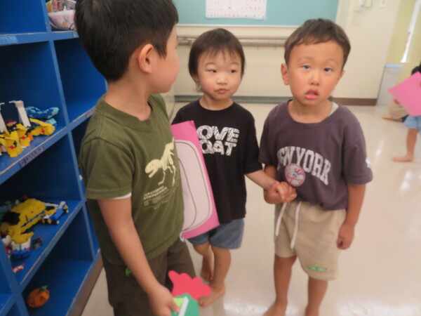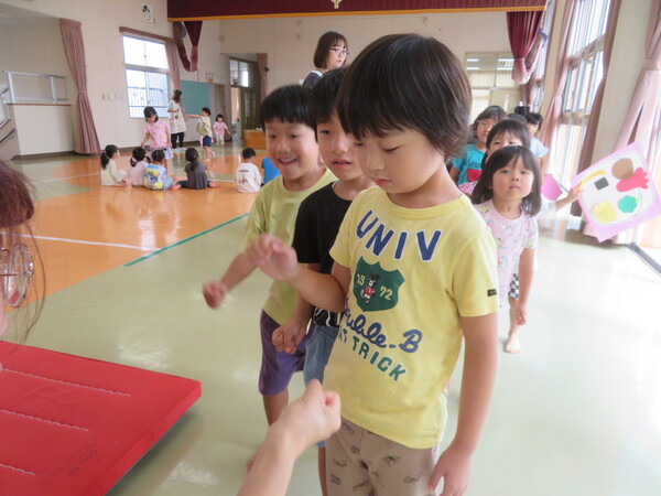 最近ではレベルアップし、前のグループにどんな質問をしたのか・お友だちは何と答えたかクイズにしています。