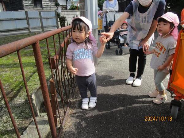 【ルール】 輪っかの中のものを外に出しながら前に進む→最後まで行ったらまっすぐ帰って次のお友だちにタッチ→次のお友だちは輪っかの外に出ているものを中に入れながら前に進む→最後まで行ったらまっすぐ帰って次のお友だちにタッチ→この繰り返し