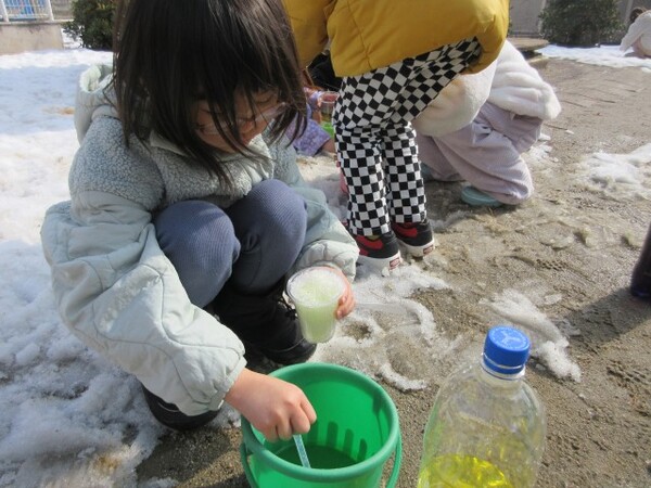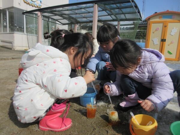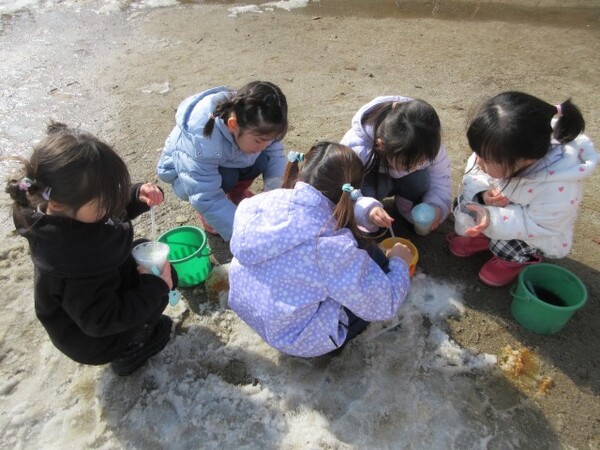 最近のあやめ組さんは、雪で遊ぶだけじゃなくて雪がとけていく様子や固まる様子