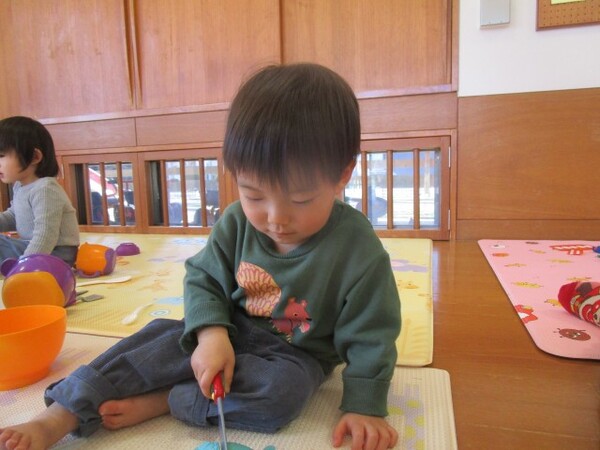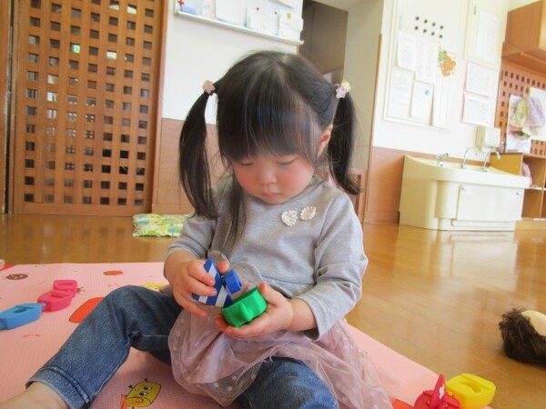 ヨットの型はめでは、ヨットのつなぎ目をよく見てたくさん繋げたり、形を見比べて正しくはめたりしながら楽しんでいました♪