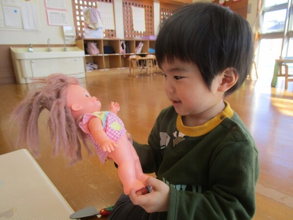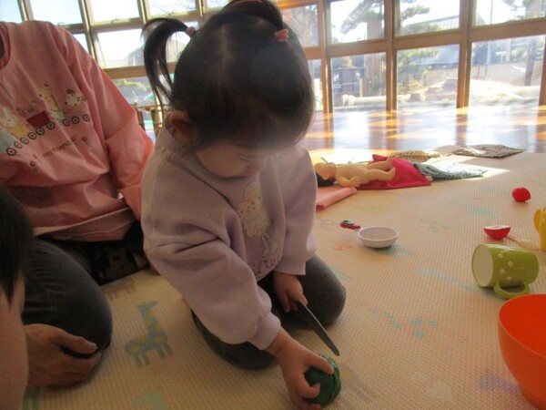 今日は、お部屋でおままごと・ヨットの型はめをして遊びました。