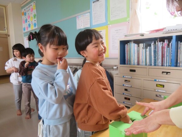 くじを引いたら静かに自分の席に戻り、周りのお友だちに見えないように開く。