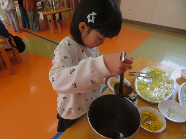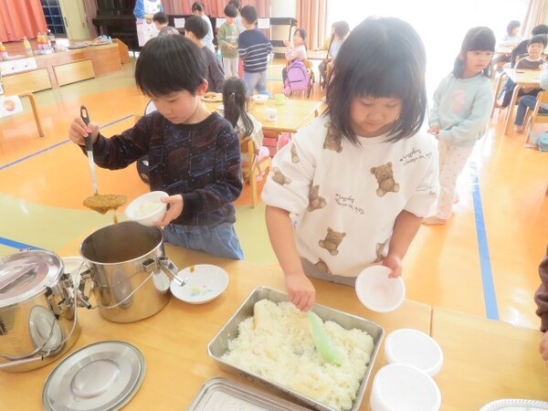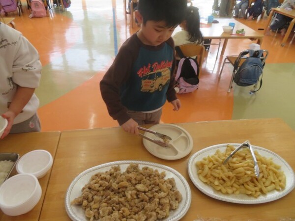 ひまわり組さんは誰も残さずいっぱいおかわりをして、バイキング給食を楽しんでいましたよ!