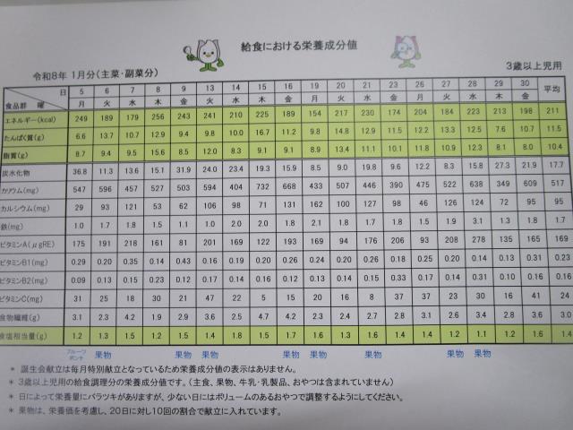 毎月「誕生会」は特別献立となっているため栄養成分値の表示はありません。